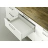 Uttrkket er utstyrt med integrert demping og selvinntrukking, som gir en rolig og lydløs lukking hver gang. Skuffesystemet er produsert i stål, og har en pulverlakkert sokkel og beslag, samt forzinket korpusskinne.