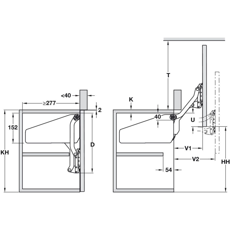 Häfele Free Up er et heisbeslag til overskap og kjøkkendører, hvor døren beveger seg rett opp i luften, og har derfor nesten ingen plassbehov ut i rommet