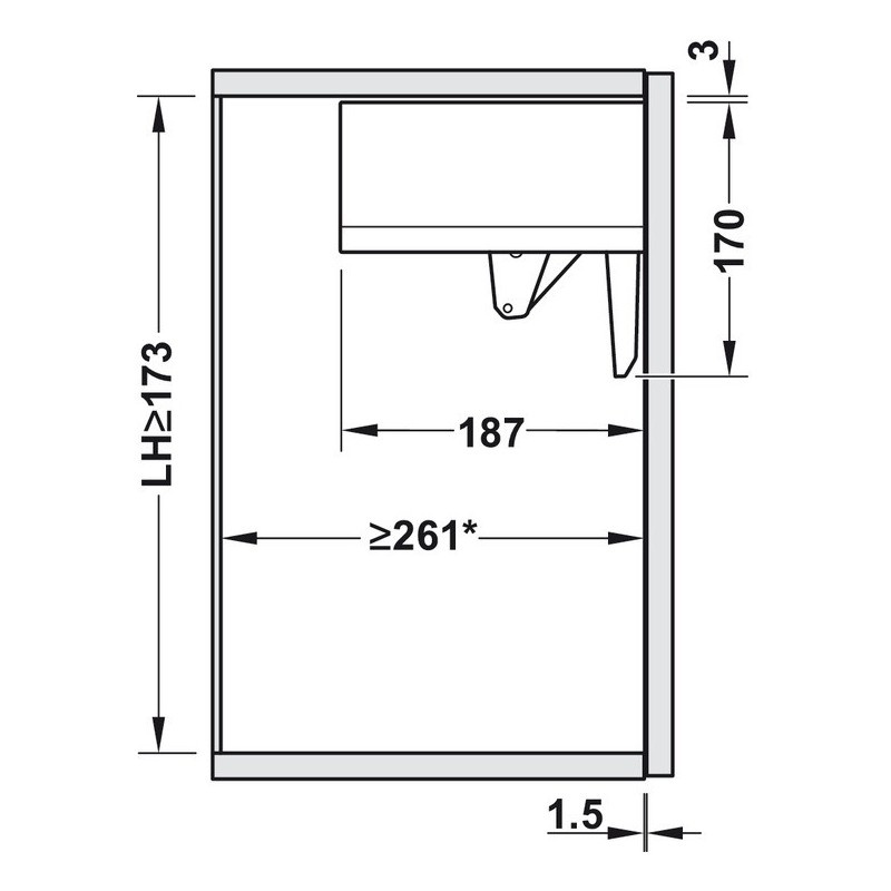 - Innebygd dybde: 187 mm