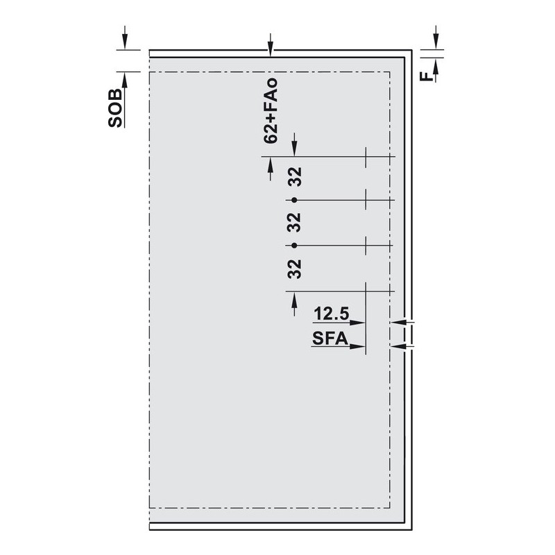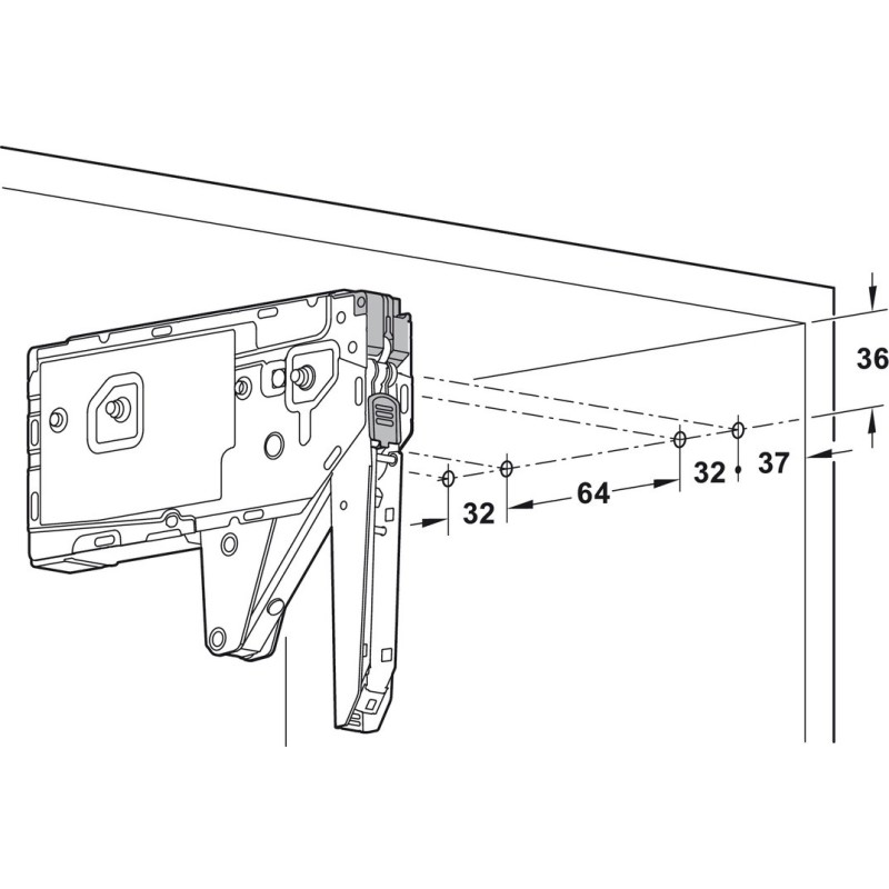 - 1 sett med fjærer (2 stk. symmetrisk, inkl. 8 sponplateskruer Ø 4 x 35 mm og posisjonsfinner, eller med 8 forhåndsmonterte euro-skrue Ø 6,5 x 35 mm)