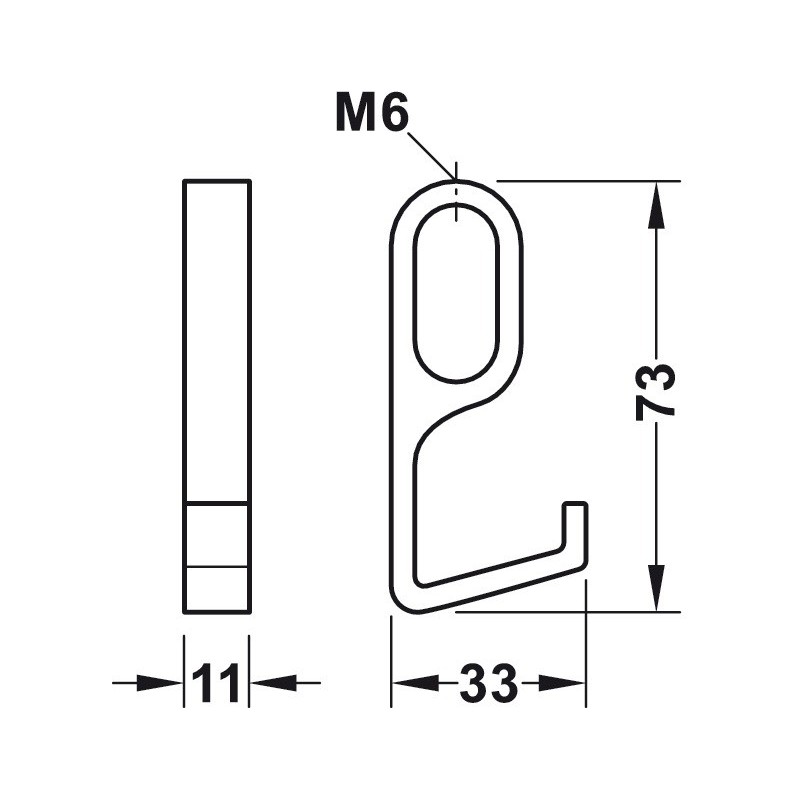 Aluminium opphengskrok til bøylestang OVA 30 x 14 mm.