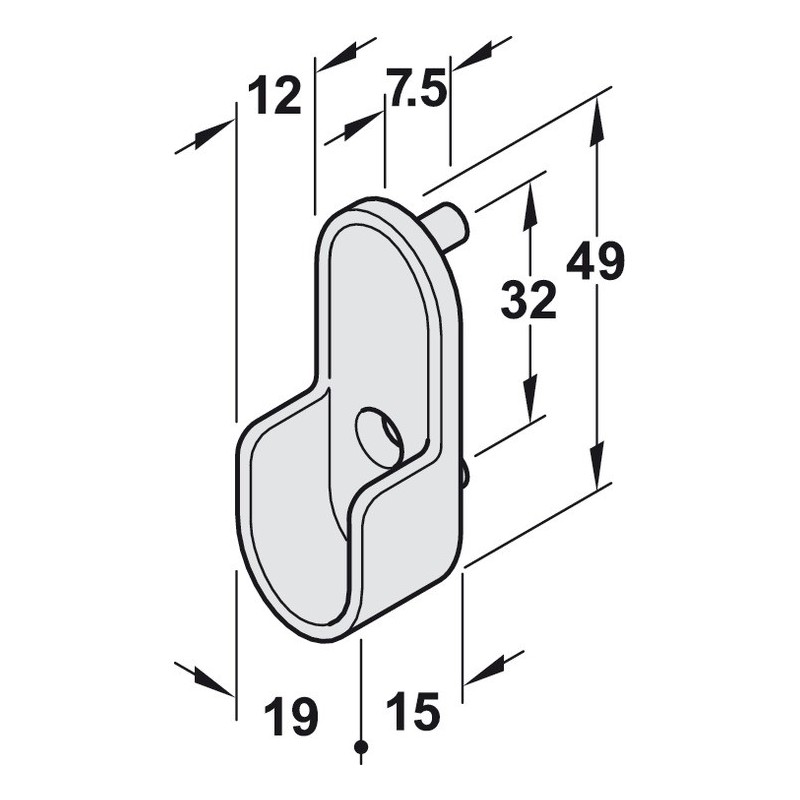 Bøylestangholder til bøylestang OVA 30 x 15 - 2 tapper og 1 skruehull