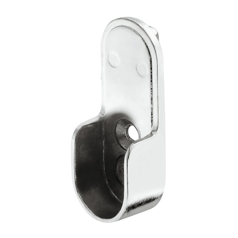 Endebeslag i forkrommet zinklegering til påskruning på korpusside med hulrække 32 mm. Denne modellen har 2 tapper og 1 skruehul
