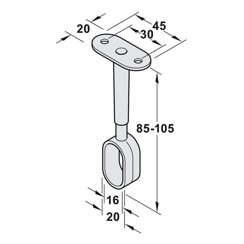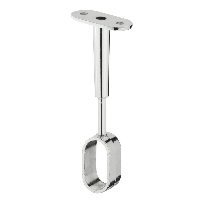 Midtbeslag / monteringsbrakett i forkrommet sinklegering til påskruning under hylle. Denne modellen er høydejusterbar (80-105 mm)