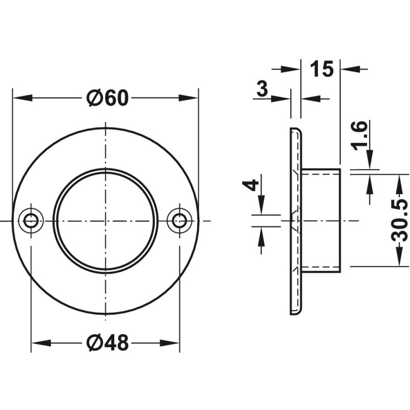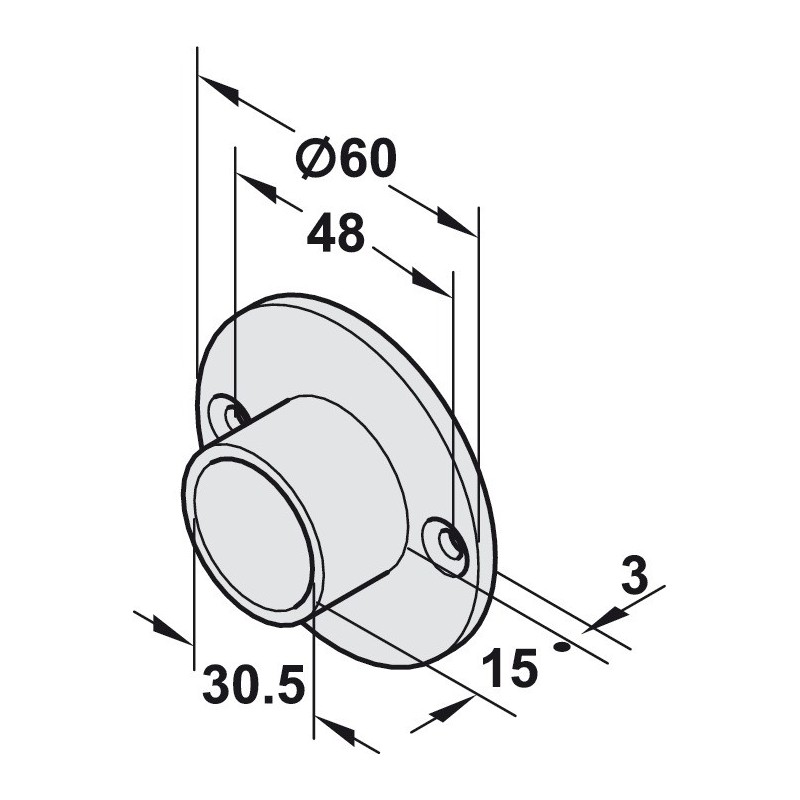 Passer til bøylestang rund, diameter 30 mmSe målene på teknisk tegning i bilder