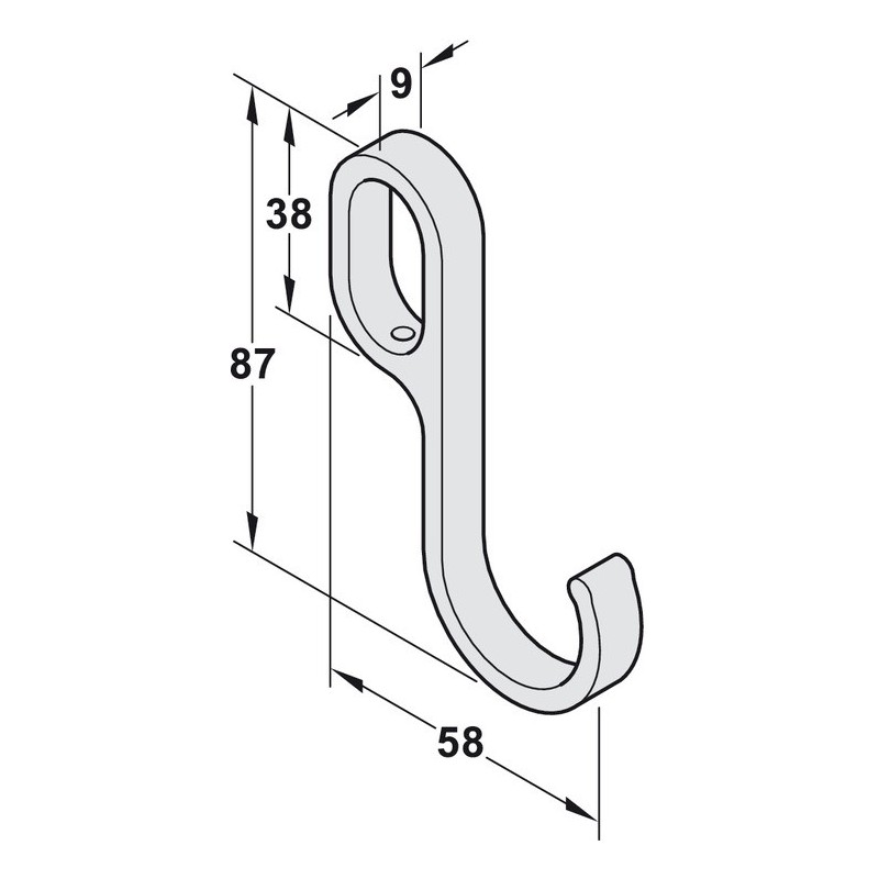 Opphengskrok i zinklegering med en forkrommet overflate.