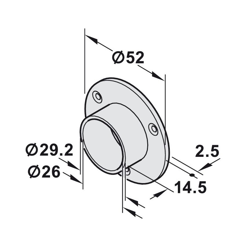 Bøylestangholder for rund bøylestang 25 mm - Forkrommet