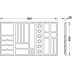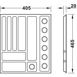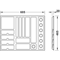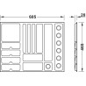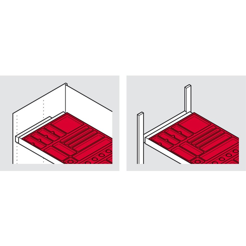 OBS! Det kreves en innlegghylle i uttræksrammen under smykkeinnsatsen for å stabilisere den. Denne kan du lage selv, eller hvis du har 19 mm tykkelse på korpus, kan du bruke en metallbunn HER