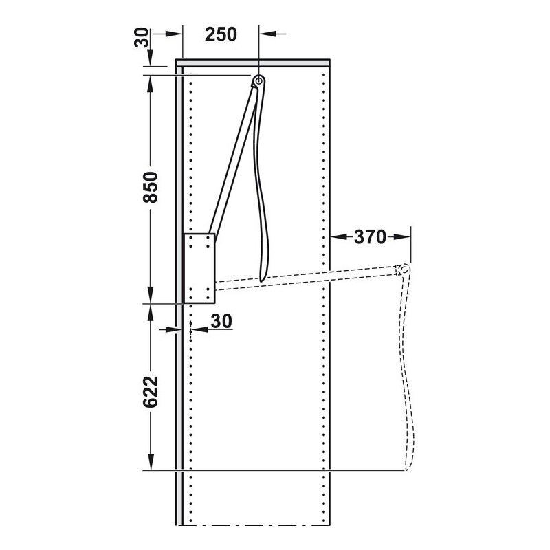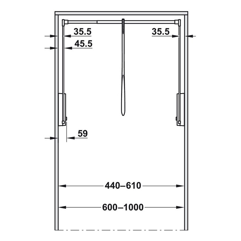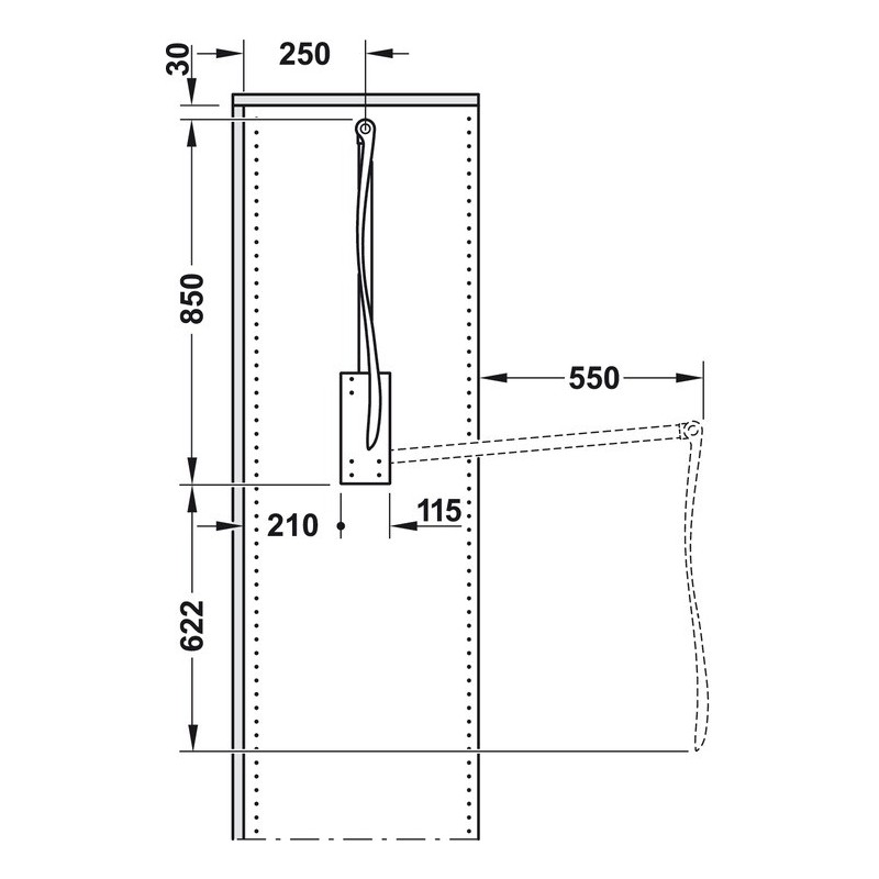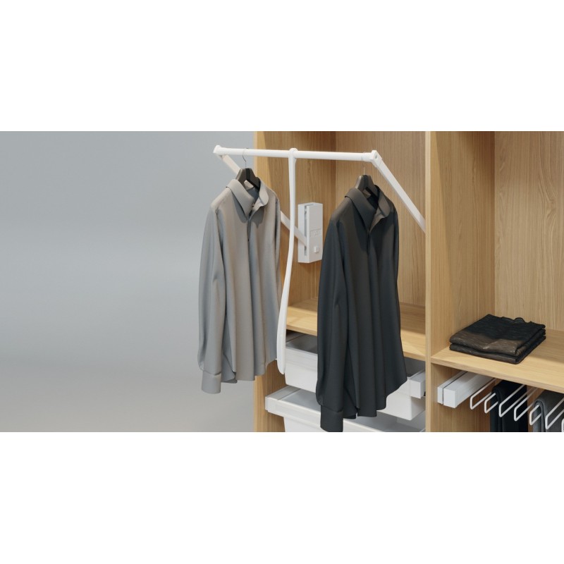Smart garderobeløft fra DressCode-serien som lar deg henge opp klærne og utnytte skapet i høyden. Med DressCode er det selvfølgelig verktøyløs montering.