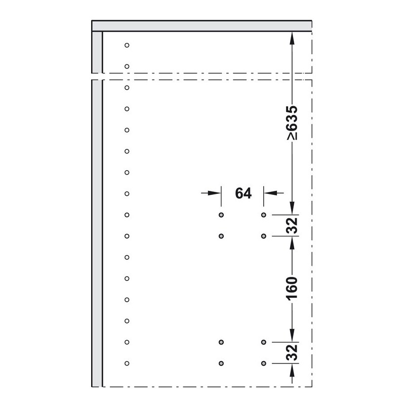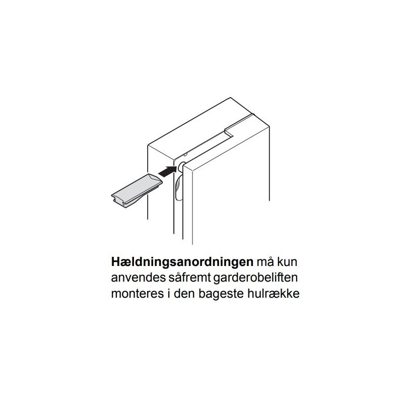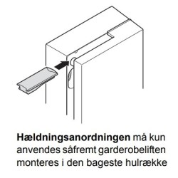 • BEMERK! Ved montering midt i skapet må vedlagt hellingsanordning ikke brukes!