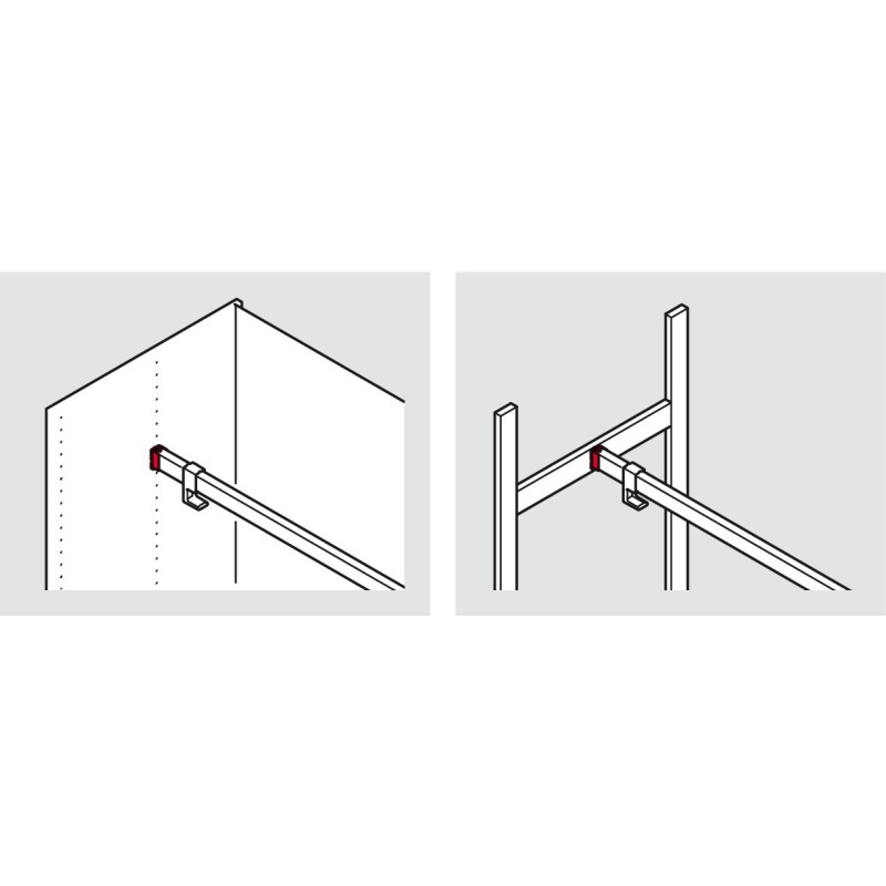 Bøyleholder i hvit for garderobestangen i DressCode-serien. For enkel og rask verktøyløs montering.