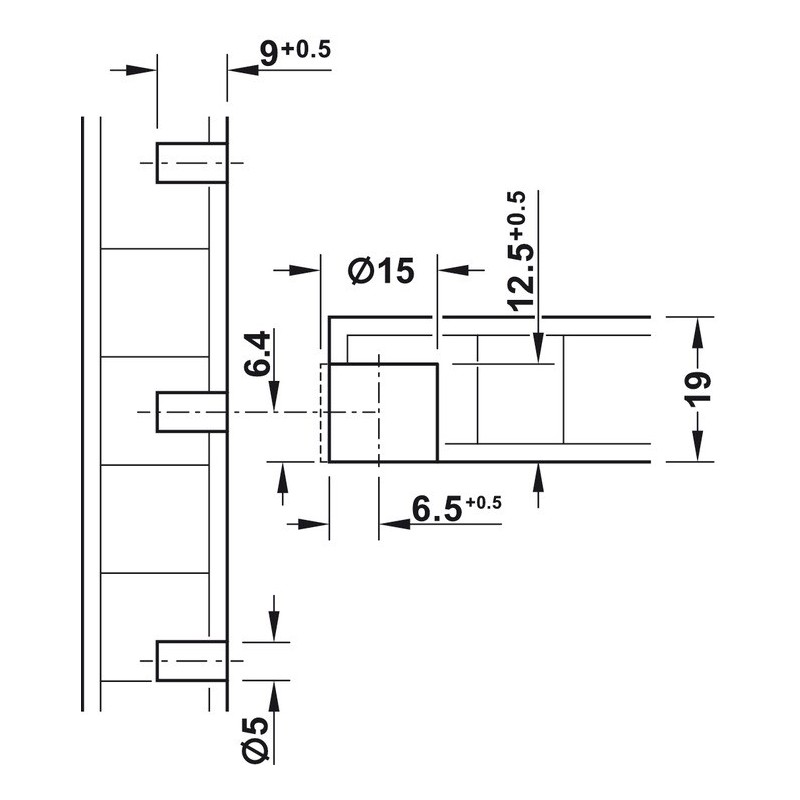 • Sett inn bæredelen i Ø5 mm borehull og klapp ned.