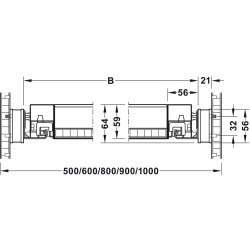- Kan plasseres i eksisterende 32 mm hullrader i skap