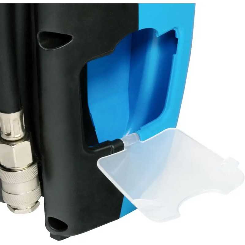 Denne kompakte kompressoren krever verken olje eller vedlikehold, og kommer med 3 dyser og en 2,5 m slange med trykkluftpistol og hurtigkobling. I tillegg har den remdrift.