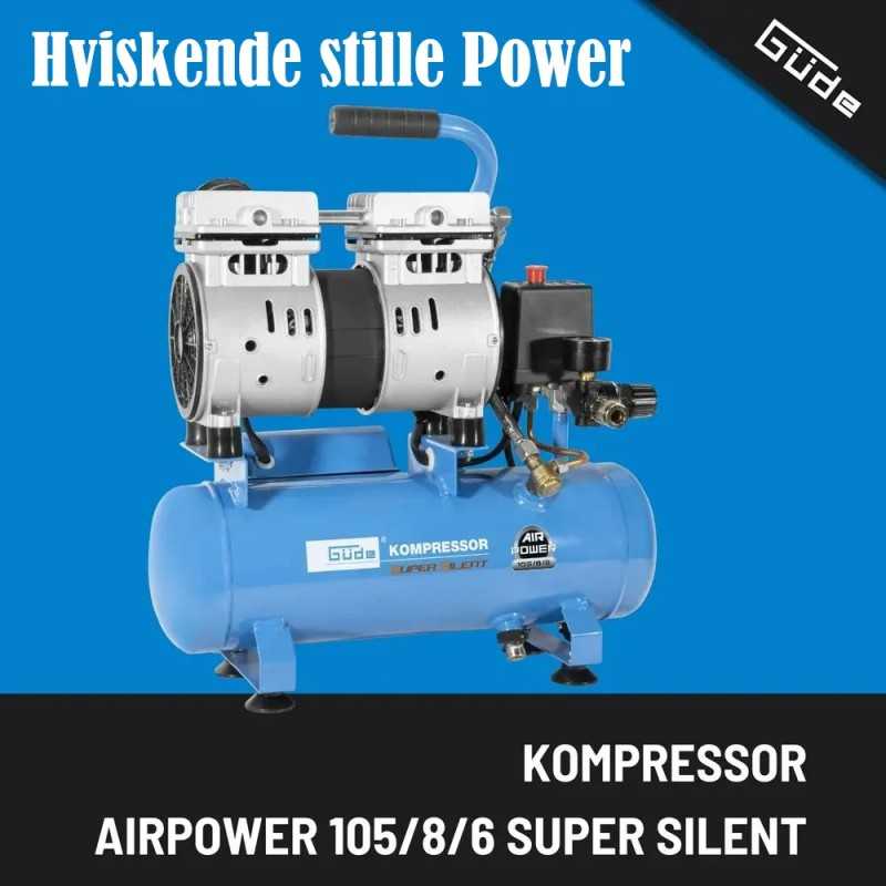 Denne kompressoren har en 6 liters tank, er oljefri og krever ingen vedlikehold. Den har direct drive og en energibesparende 2-sylinder enhet.