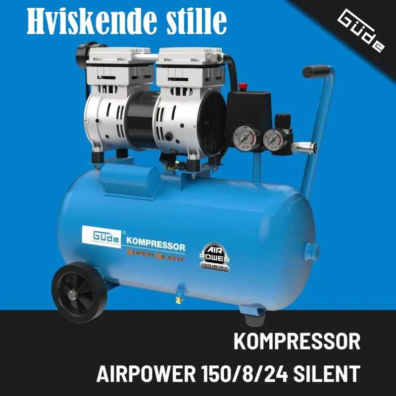 Kraftig 24 L kompressor med lyddemping - musestille tryk luft til verkstedet.