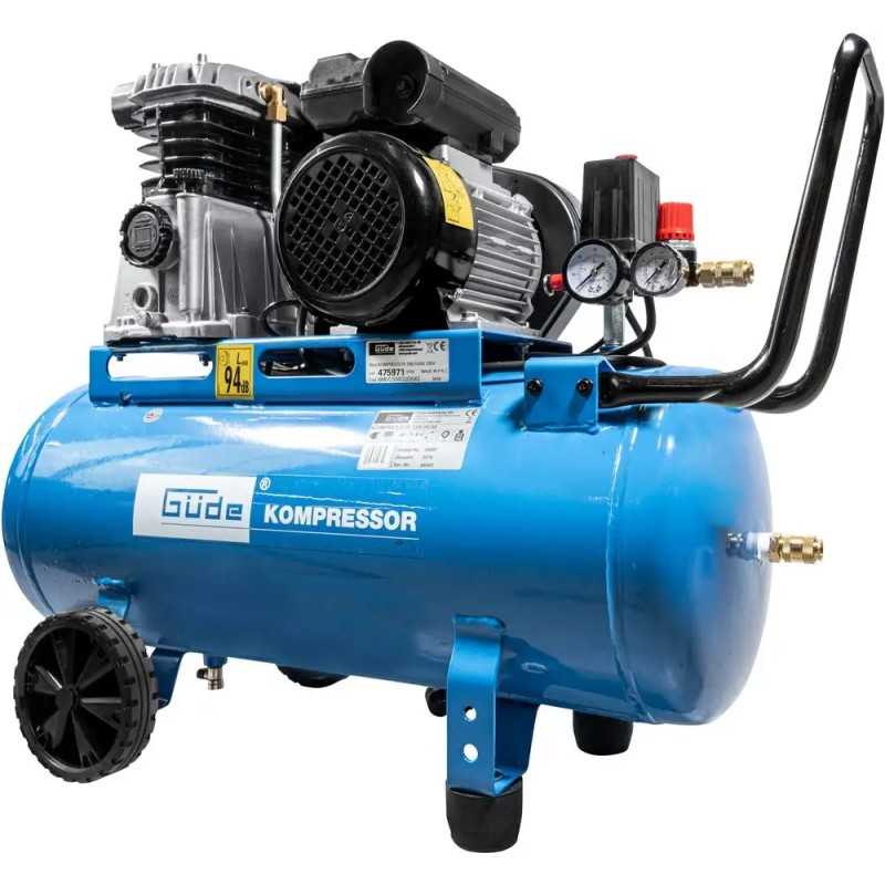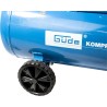 Sterk kompressor med oljesmurt 2-sylindermotor med remdrift og 50 L kedeltank. Kompressoren kan nå et trykk på maks. 10 bar, og den har en trykkreduserende funksjon som gjør det enkelt å justere trykket. Det er også sikkerhetsventil og kondensdrenering, samt mottrykksventil og integrert luftfilter. Det er trykkmåler både for kedeltrykket og arbeidstrykket.