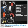 Denne modellen kommer med et imponerende tilbehørsett, som inkluderer flere forskjellige trykkluftpistoler og ventiler.