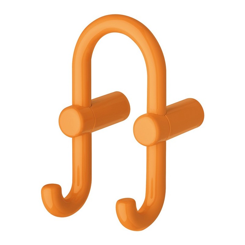 U-formet garderobekrok med 2 kroker i oransje plast.