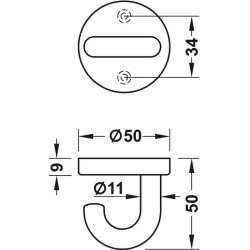 Høyde C mm Krokdiameter D mm Rosetdiameter E mm Skruediameter mm Hullavstand F mm