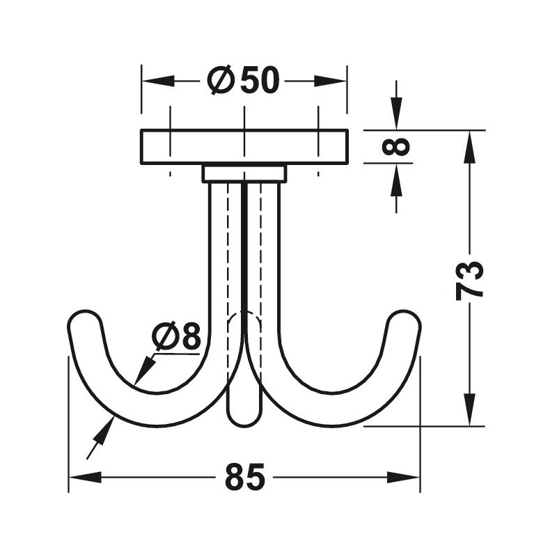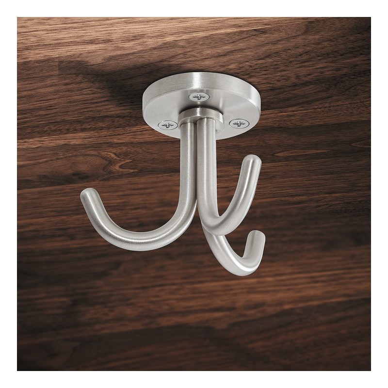 Vendbar takkrok i mattbørstet rustfritt stål med 3 sammen-sveisede buede kroker