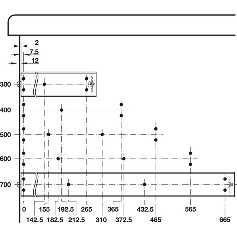 - Montering på skuffe: Senket Ø3,5
