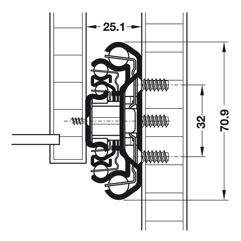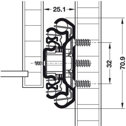 - Montering på skapsside: Euro skruer under senket