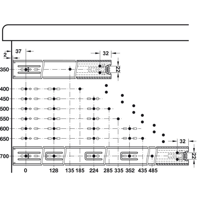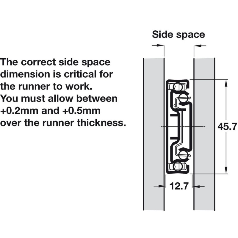 - Skuffebredde bør dog ikke overstige innbygningsdybde (Lengden på uttrækket)