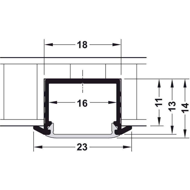 Aluminiumprofil til Häfele Loox LED-bånd med en bredde på 10 mm.