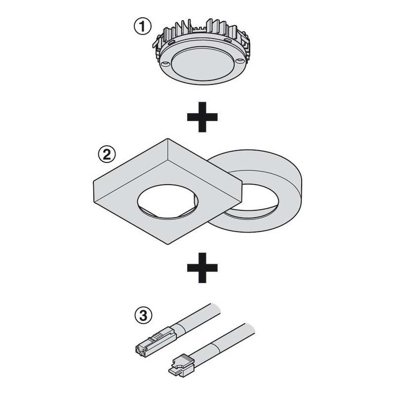 Firkantet kabinett som passer til Loox5 LED-lys 2025, 2026 og andre modulære LED'er, som har en diameter på Ø 58 mm