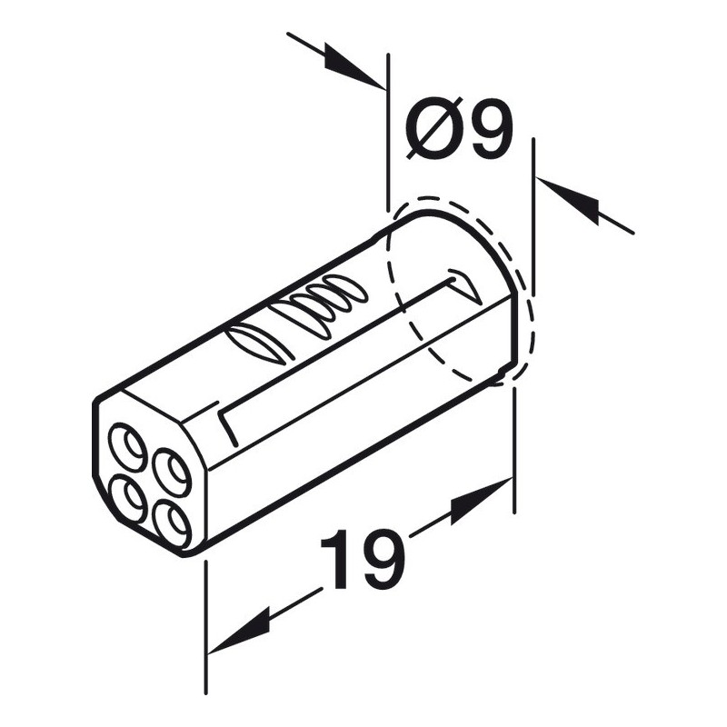 • Borehul for kabel: Ø8 mm for den ene enden og Ø9 mm for den andre.