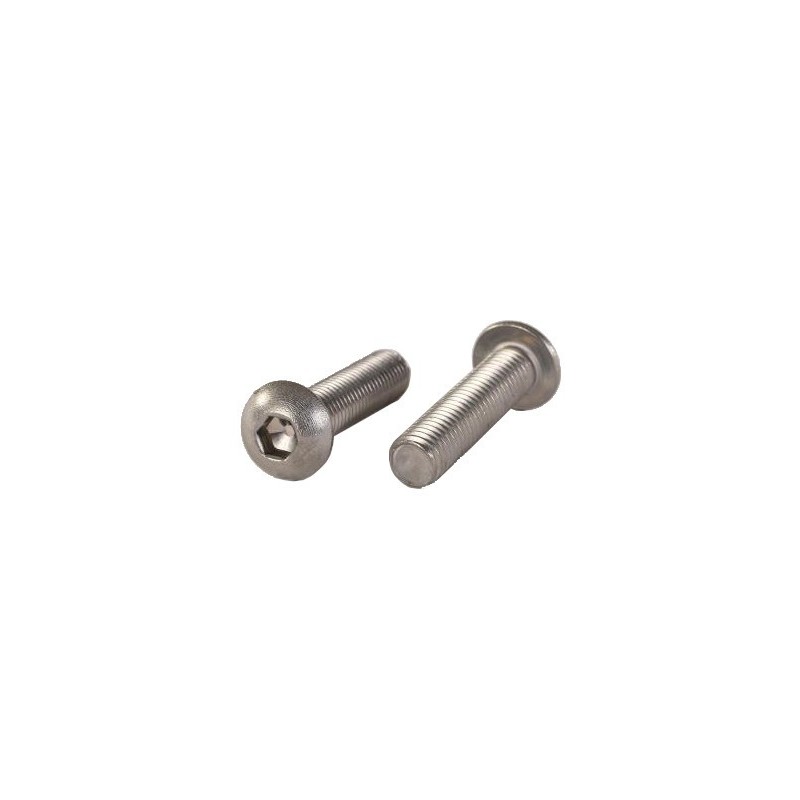 Buttonhead skrue produsert i rustfritt stål (A4) med delgjenger laget i henhold til ISO 7380-1.
