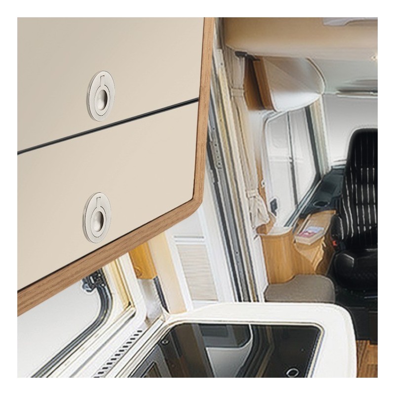 Flott grep i skipdesign med rundt håndtak på en rund bakplate i forkrommet matt messing.