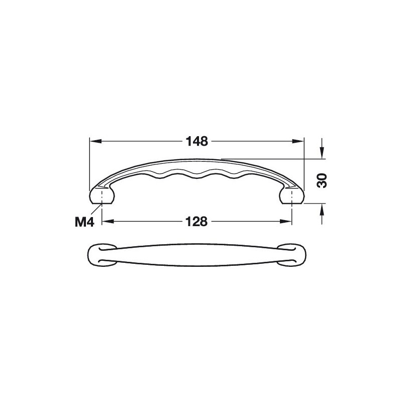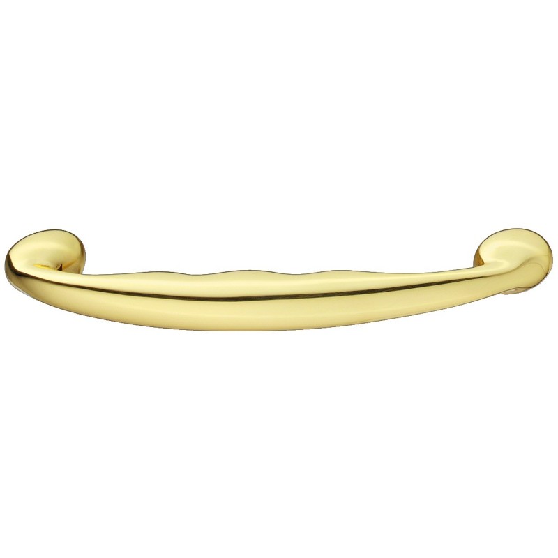 Håndtak i polert messing. Håndtaket har bølget design tilpasset fingrene bak for bedre grep. Håndtaket har et elegant og stilfullt design som passer godt til eldre og klassiske møbler.