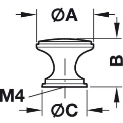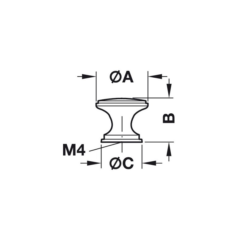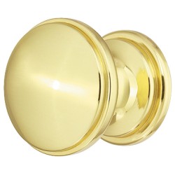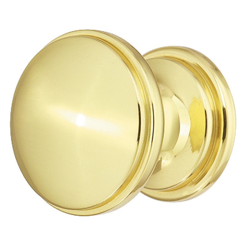Enkelt knottgrep i polert messing. Grepet har et klassisk design med en bred topp og bunn, og en smal midte.