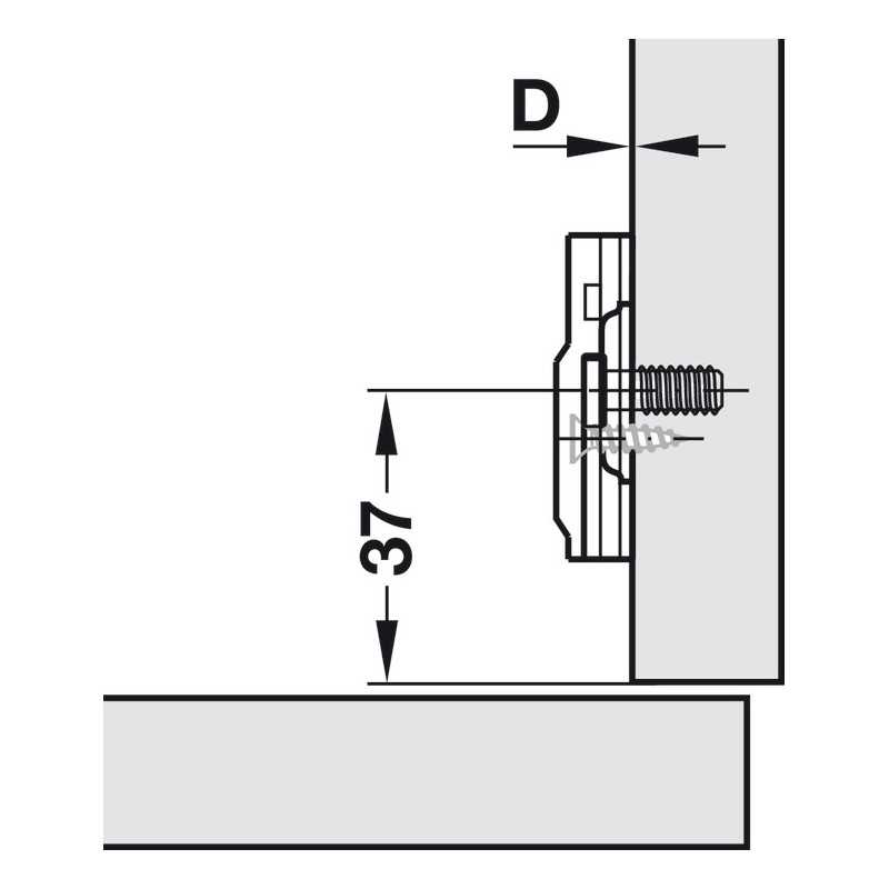 Kryssmontageplade til Häfele Metalla kopphengsler.