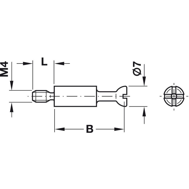 Samlebolt til minifix. Passer til et M4-gjenge. Oplagt å bruke i en bøsning som kan finnes under tilbehøret.