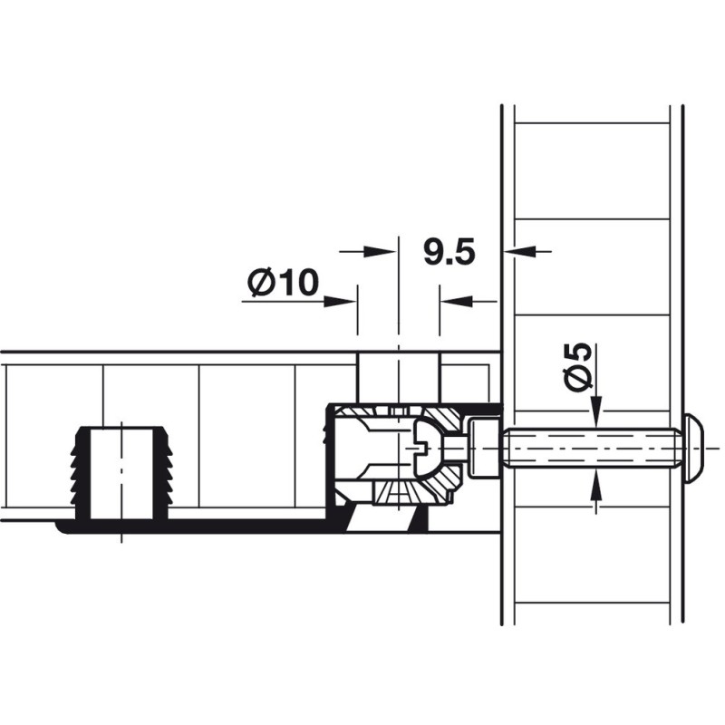 Minifix samlebolt, M4 gjenger