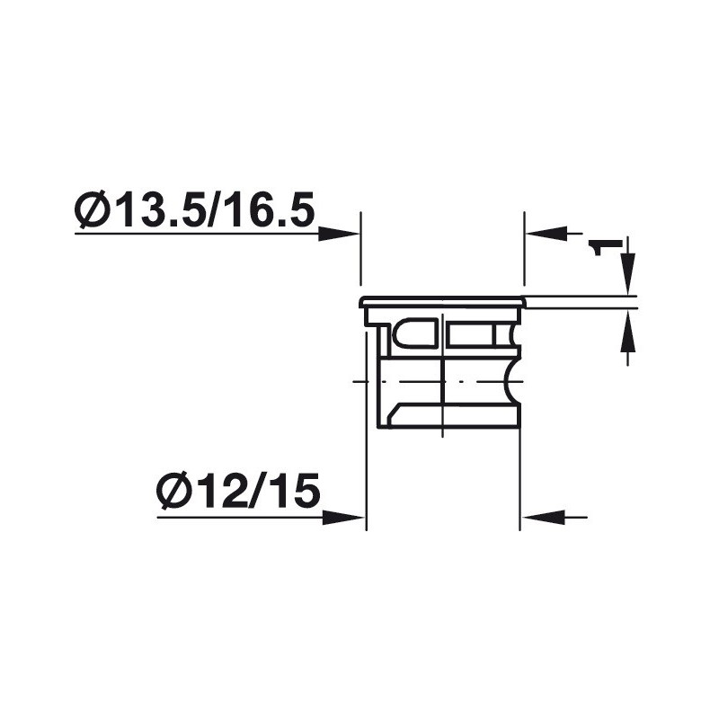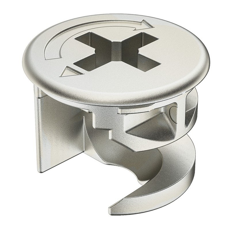 Koppling beslag Minifix 12 for tretykkelse fra 12mm til skap. Denne modellen er med dekk kant.