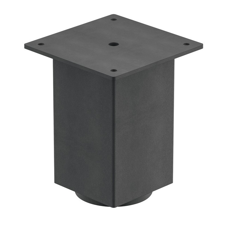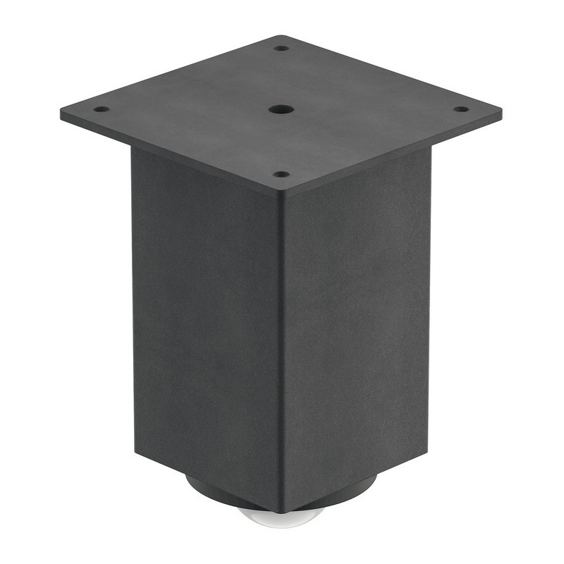 Enkel og smart møbelfot i antrasittfarget stål med monteringsplate.