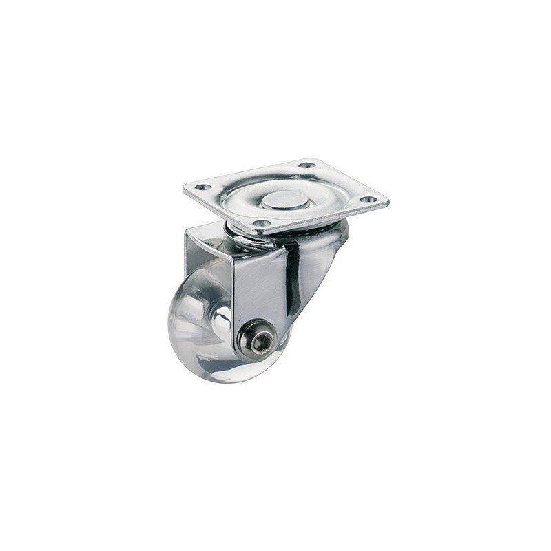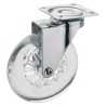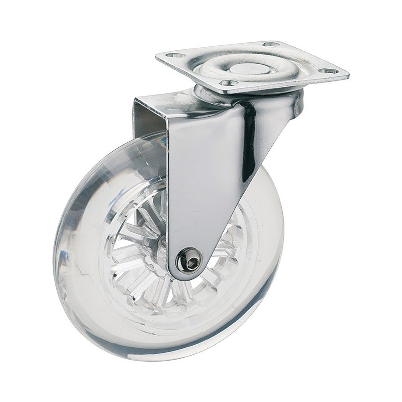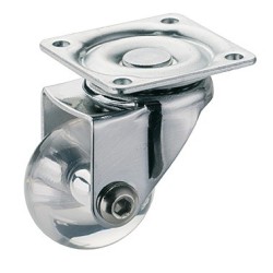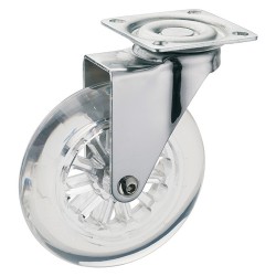 Styrbar møbelhjul i klar gummi med monteringsplate og uten brems.