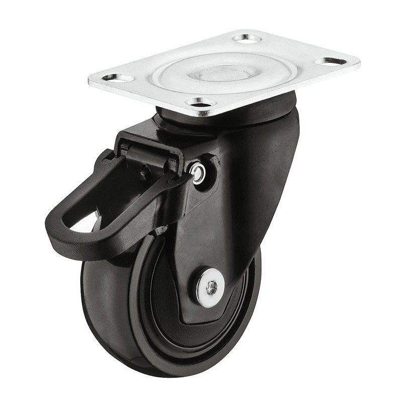 Styrbar sort møbelhjul med brems, 3 størrelser - bæreevne 12 - 50 kg