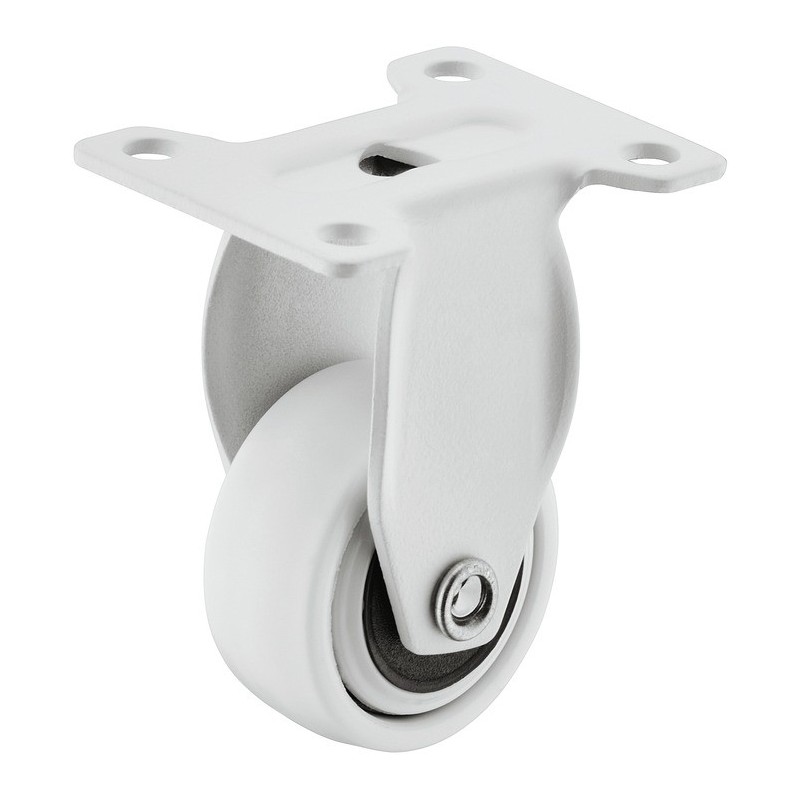 Hvit møbelhjul i industristål - fastlåst - bæreevne 12 kg