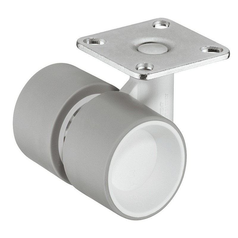 Dobbelt møbelhjul uten brems i hvit/grå plast - bæreevne 35 kg