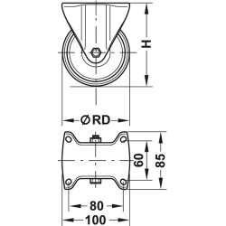 Fastlåst møbelhjul i stål og polyamid - bæreevne 200 kg