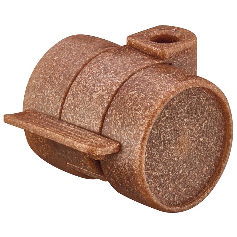 Flott og pent miljøvennlig møbelhjul i brunt tre og kunststoff. Denne modellen er produsert av resirkulert tre og kunststoff. Dette hjulet er styrbart og kommer med brems men uten monteringsstift.