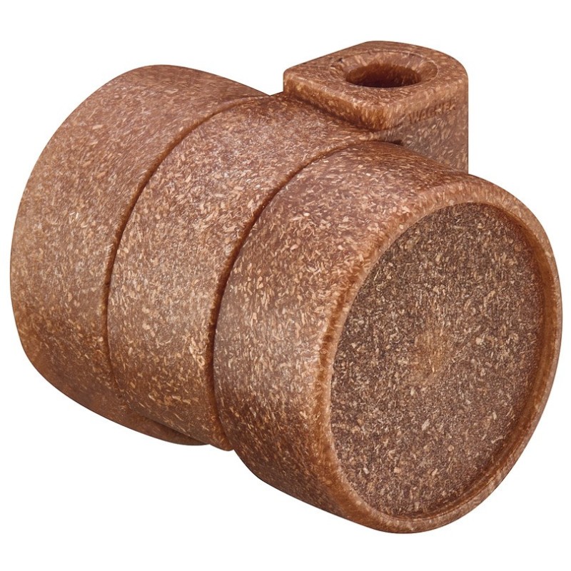 Flott og pent miljøvennlig møbelhjul i brunt tre og plast. Denne modellen er produsert av resirkulert tre og plast. Dette hjulet er styrbart og kommer uten monteringsstift.