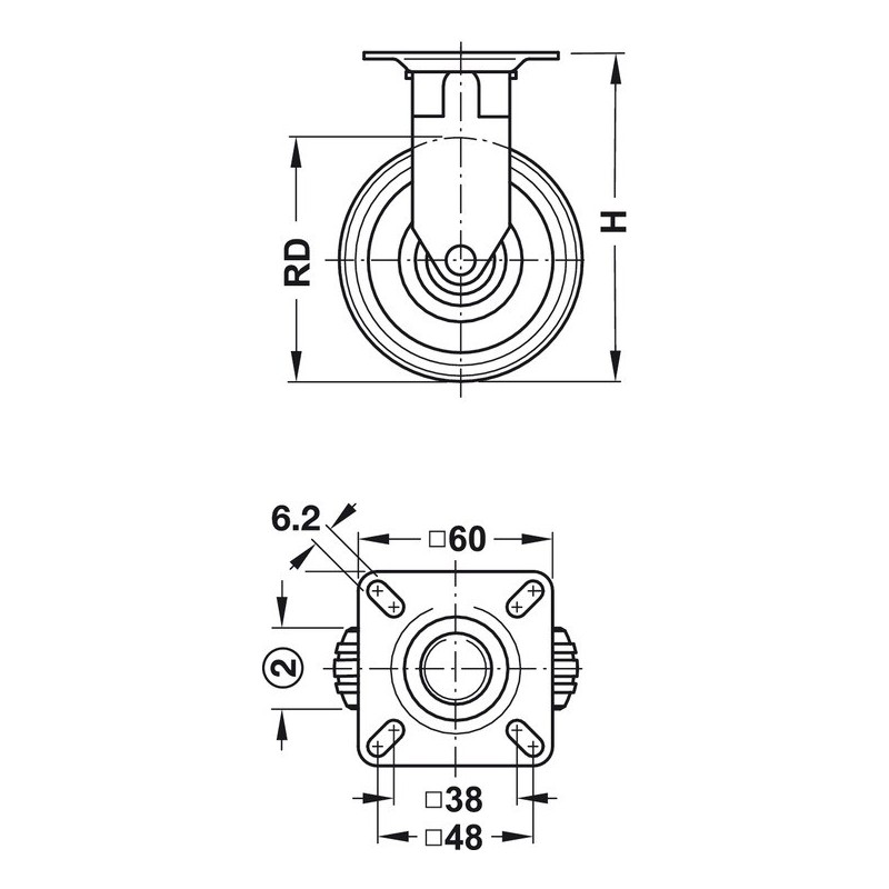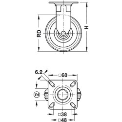 Fastlåst møbelhjul - montasjeplate - 40-60 kg