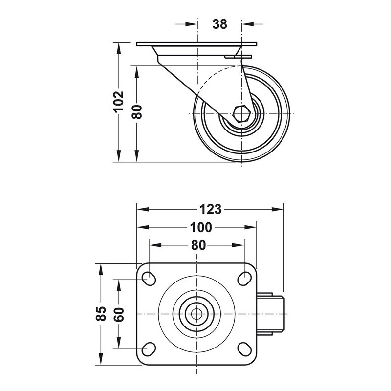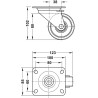 Denne hjulet er styrbart og kommer med monteringsplate (monteres med 4 skruer).