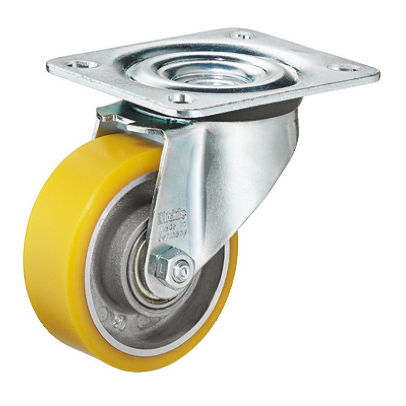Motstandsdyktige møbelhjul med gule polyuretan hjul. Dette hjulet er spesielt motstandsdyktig mot mekaniske påvirkninger, det har høy skjærfasthet og rivestyrke, og etterlater ingen merker. Det er spesielt elastisk og har en 92° Shore A materialhardhet.